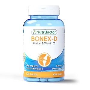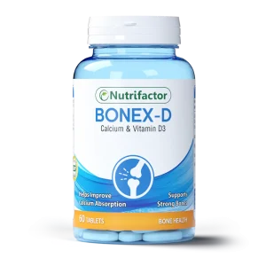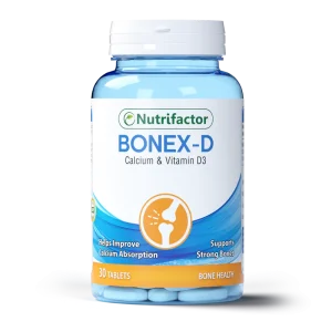 Nutrifactor Bonex D supports bone and joint health with Calcium and Vitamin D3. Helps improve bone density and muscle function.