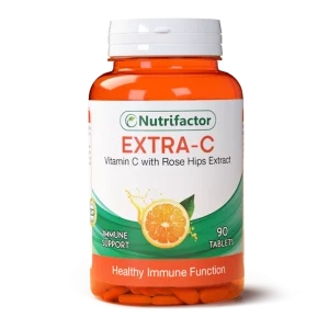 Nutrifactor Extra-C is a powerful antioxidant supplement with Vitamin C and Rose Hips to support immune health, skin vitality, and collagen production.