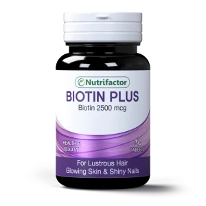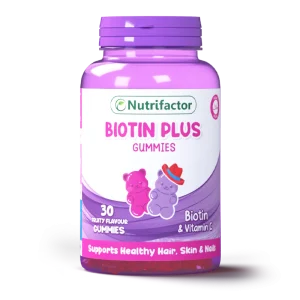 ₨ 1,200Nutrifactor Biotin Plus Gummies deliver 5000 mcg Biotin and Vitamin C in a delicious chewable form to support hair strength, glowing skin, and nail health.