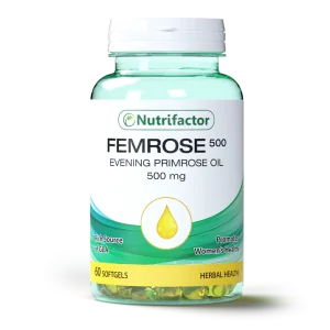 ₨ 2,400Nutrifactor Femrose 500 mg supports womenโs hormonal health, skin hydration, and PMS relief with natural Evening Primrose Oil rich in GLA.