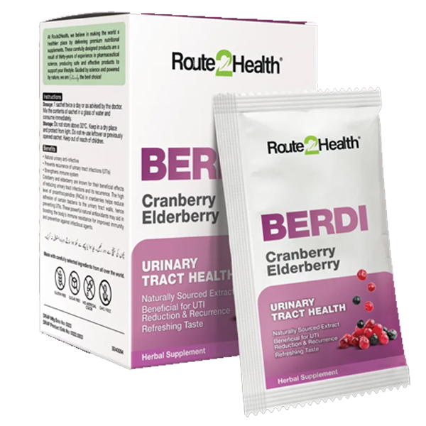 Berdi is a unique combination of two berries, Cranberry and Elderberry. These are best known for its role in preventing urinary tract infections, especially the recurrent infections. Cranberries help reduce adhesion of certain bacteria to the urinary tract walls and fighting off urinary tract infections.