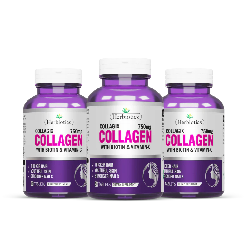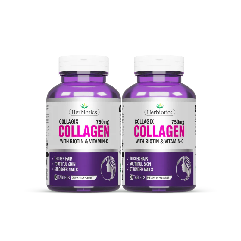 Herbiotics Collagix is a powerful collagen-boosting beauty supplement designed to support skin elasticity, hair strength, and nail health. Formulated with Type I & III Collagen, Biotin, and Vitamin C, it provides essential building blocks for youthful skin and structural support for connective tissues.