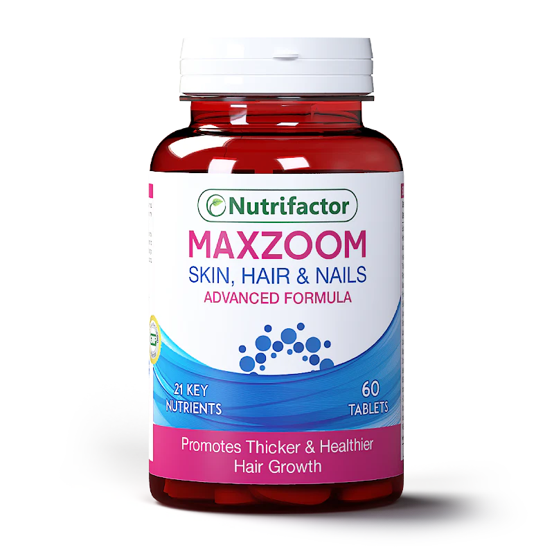 - Nutrifactor’s Maxzoom contains 21 essential nutrients which play important role in growth, strength and the healthy appearance of hair, nails and skin.