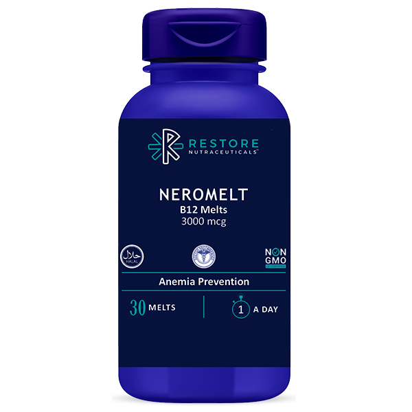 Restore Neromelt B12 is a high-potency Vitamin B12 supplement that delivers 3000mcg per tablet in a convenient fast-melt form. Designed for adults seeking to maintain daily nutritional balance, it helps support energy metabolism and overall wellness.