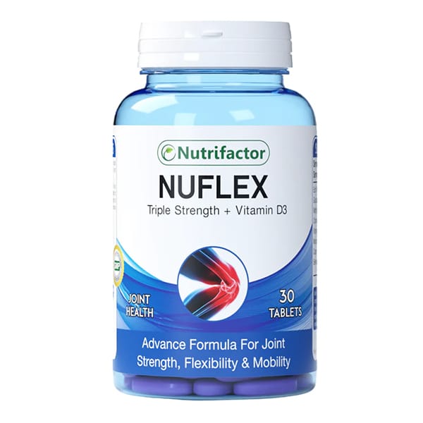 - Nutrifactor’s Nuflex includes 7 essential nutrients that are effective for joints and bones health. It includes two well-known joints supporting nutrients Glucosamine and Chondroitin, which help in the formation of cartilage tissue, also support joints mobility and comfort.
