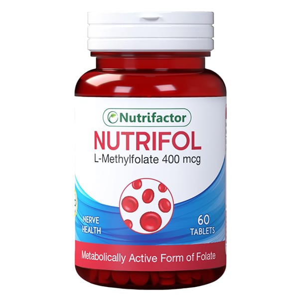 Nutrifactor Nutrifol is a premium folate supplement containing 400 mcg of L-Methylfolate, the biologically active form of folic acid. This form is readily absorbed and utilized by the body, making it especially beneficial for individuals with impaired folic acid metabolism. Nutrifol is designed to support pregnancy health, fetal development, and cardiovascular wellness by maintaining normal homocysteine levels.