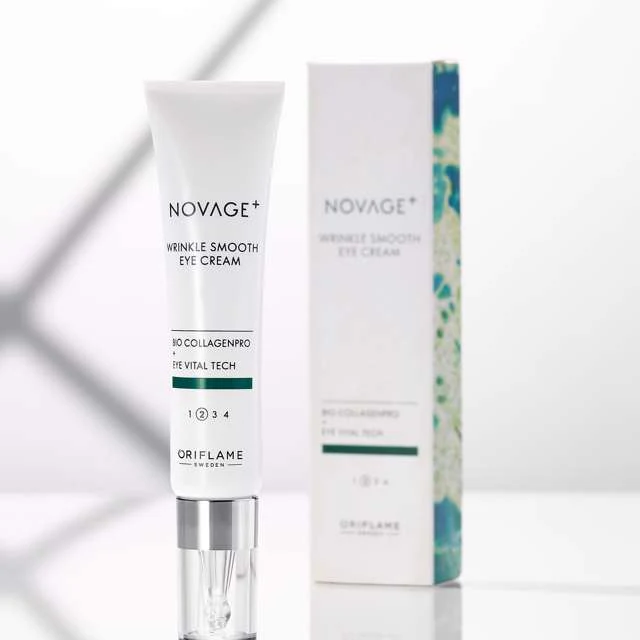 Care for your delicate eye area with the hydrating and smoothing formula of Oriflame Novage+ Wrinkle Smooth Eye Cream.