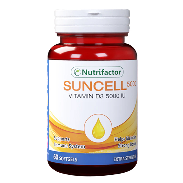 Nutrifactor’s Suncell Vitamin D3 5000 IU is a high-potency supplement designed to support bone health, immune function, and overall wellness. Vitamin D3 plays a vital role in calcium absorption, promoting bone strength and mineralization. It also supports a healthy immune system and enhances mood regulation. This supplement is ideal for individuals with limited sun exposure, as Vitamin D3 is naturally produced in the skin through sunlight. Each softgel offers a potent dose of 5000 IU, ensuring optimal Vitamin D levels throughout the year.