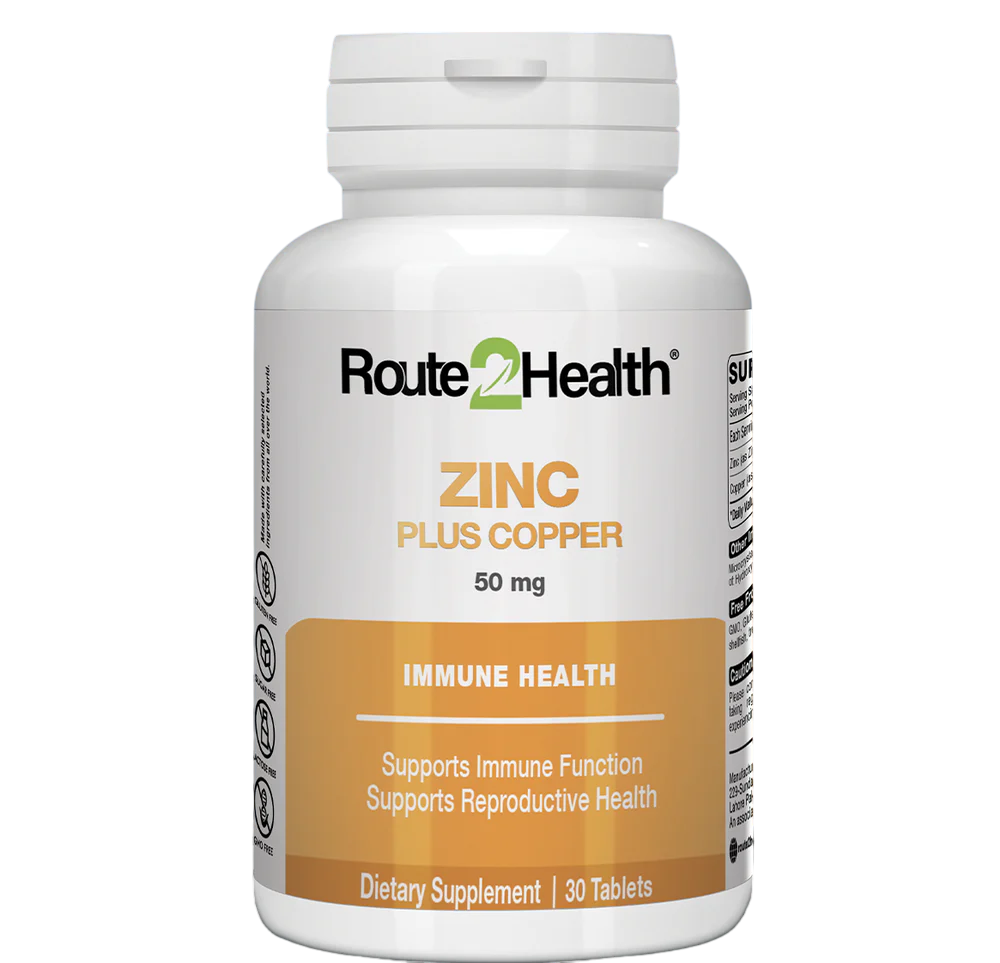Route2Health Zinc Plus Copper is a balanced mineral supplement formulated to support immune function, cellular health, and antioxidant protection. This essential duo plays a key role in maintaining the body’s defense system, skin health, and overall metabolic function.